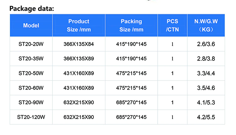 पावर: 20W 35W 50W 60W 90W 120W 150W 200W